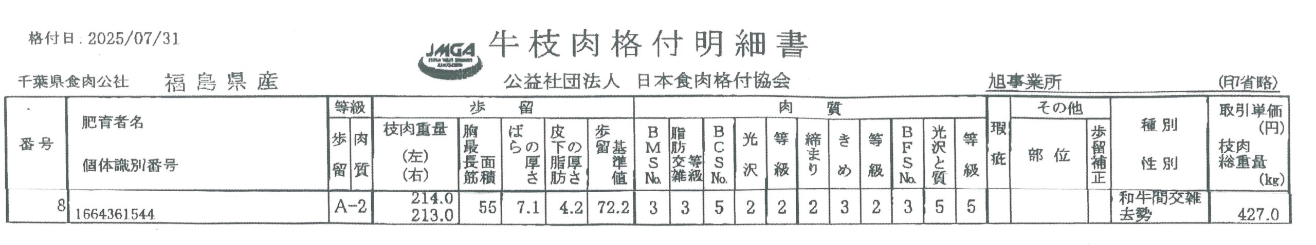 A2(BMS3)・427㎏で、格付けはこちらでした。