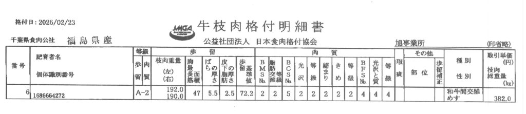 同じ2等級でも、やっぱり黒毛の血が半分入っていると、