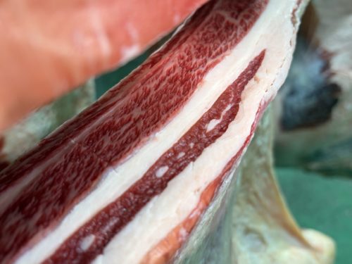 野性味の強い短角牛に、黒毛の繊維のきめ細やかさが