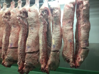 枝肉を順番に見ていってると、1頭だけが急に上がっていて。