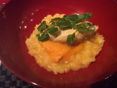 リゾットは石黒さんのホロホロ鶏と雪下人参。
