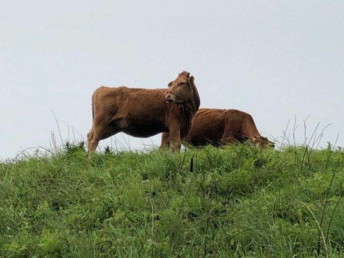 (あまりの強風に牛たちはみんな谷に降りちゃってて、なかなか会えませんでした。)