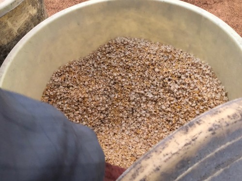 国産大豆を炒って擦った、きな粉みたいな餌。