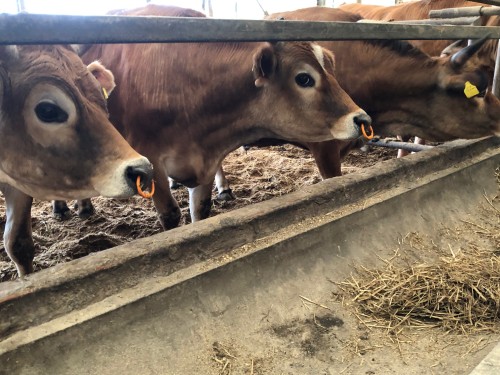 その後、息子さんである雅信さんの繁殖牛舎の牧野へ。